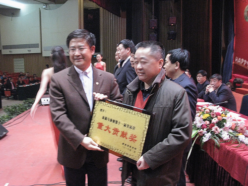 会议对荣获“陕西省体育局备战与参赛第十一届全运会突出贡献奖”、“重大贡献奖”、“贡献奖”,“2009年度体育产业经营工作突出贡献奖”、“贡献单位奖”的22个单位和部门以及荣获“2009年度陕西体育好新闻一等奖”、“第十一届全国运动会敢斗奖”的31位先进个人颁发了奖牌。我院获得省体育局颁发的“重大贡献奖”。周里副院长代表学院领取了省体育局局长兼党组书记王建军颁发的奖牌。在随后举行的迎新春联欢会上,由我院艺术系教师和学生激情上演的舞蹈“少女之春”受到与会代表的热烈欢迎。